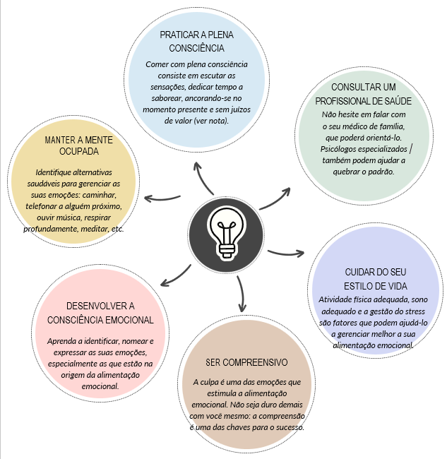 A alimentação emocional afeta uma grande parte da população. Torna-se um problema quando é frequente e constitui uma fonte de sofrimento e/ou mal-estar. Identificar as emoções associadas permite lidar melhor com elas e implementar estratégias adequadas. Em caso de dificuldades, recomendamos que você consulte um profissional de saúde.