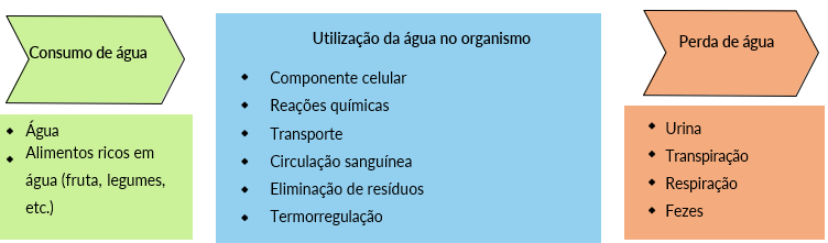 O organismo elimina constantemente água pela respiração, transpiração e excreções (urina, fezes).