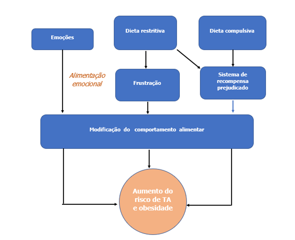 Em determinadas situações, a relação com a comida pode ser perturbada, levando a uma alimentação emocional, dietas especiais ou até mesmo à dependência alimentar, o que pode levar ao desenvolvimento de um TA ou da obesidade.