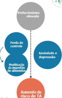 O perfeccionismo elevado geralmente está associado a formas restritivas de TA. Altos níveis de perfeccionismo levam ao aumento da ansiedade e da depressão, o que, por sua vez, contribui para aumentar o risco de TA. Além disso, o perfeccionismo pode reforçar o desejo de controlar seu corpo e sua imagem, levando gradualmente à perda de controle e a uma redução significativa da ingestão de alimentos (consulte a ficha de alimentação). Eventualmente, a perda de peso se torna uma obsessão e pode estar associada a uma alteração do sistema de recompensa