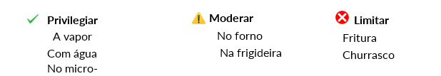 As estrelas são dadas a título indicativo para facilitar a comparação dos métodos de cozimento, com base na formação de compostos nocivos e/ou na perda de nutrientes, sem levar em conta o sabor, a conveniência ou o consumo de energia.