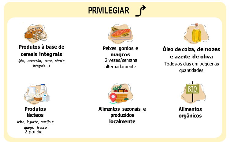 As recomendações do Programa Nacional de Nutrição e Saúde (PNNS) francês fornecem orientações confiáveis para adotar uma alimentação equilibrada. No entanto, é importante lembrar que a alimentação não é apenas uma questão de nutrição: tem também uma dimensão de prazer e de confraternização que é essencial preservar. Estas recomendações devem ser encaradas como guias para orientar você em suas escolhas e não como regras rígidas a serem aplicadas de forma estrita.