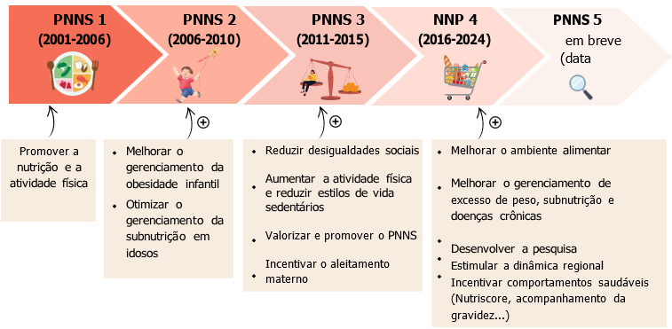 O PNNS tem evoluído ao longo dos anos (PNNS 1 → PNNS 4) para adaptar seus desafios aos avanços científicos e às novas problemáticas da sociedade.