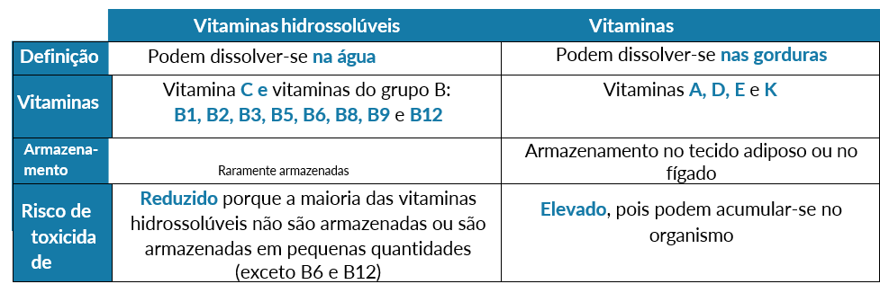 As vitaminas são compostos que desempenham um papel essencial em muitas das funções do nosso organismo. É importante salientar que as vitaminas não podem ser sintetizadas pelo nosso organismo, com exceção das vitaminas K e D.