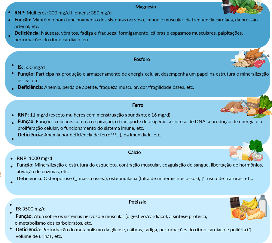 Essas são as RNP/IS para adultos para alguns minerais/oligoelementos :