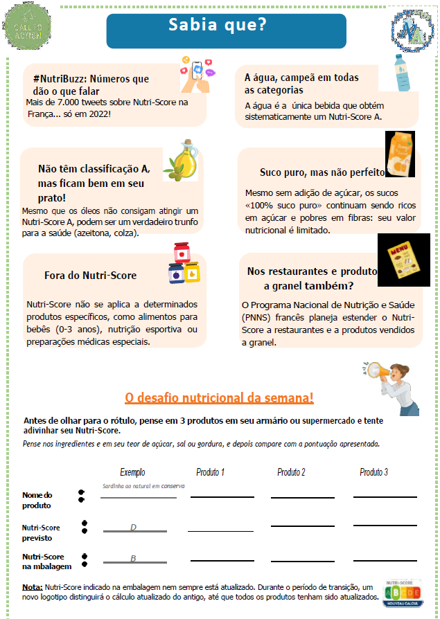 Nota: o Nutri-Score indicado na embalagem nem sempre está atualizado. Durante o período de transição, um novo logotipo distinguirá o cálculo atualizado do antigo, até que todos os produtos tenham sido atualizados.