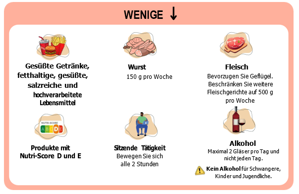 Diese Empfehlungen sollen der Bevölkerung helfen, eine gesündere Ernährung und eine aktivere Lebensweise anzunehmen. Sie wurden im Januar 2019 von der staatlichen Gesundheitsagentur „Santé publique France“ veröffentlicht und stützen sich auf solide wissenschaftliche Grundlagen und die Arbeit eines Expertenkomitees.