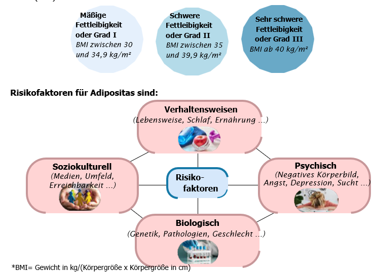 Adipositas ist eine multifaktorielle chronische Erkrankung mit einer anormalen oder übermäßigen Ansammlung von Fett, die nachteilige Auswirkungen auf die Gesundheit haben kann.