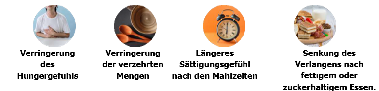 MAT ahmen die Wirkung bestimmter Hormone nach, die auf natürliche Weise vom Körper produziert werden, um Sättigungssignale zu erzeugen (GLP-1/GIP). Durch Nachahmung dieser Moleküle oder Aktivierung der Rezeptoren tragen Adipositas-Therapien dazu bei, ein schnelleres, stärkeres und länger anhaltendes Sättigungssignal im Gehirn zu erzeugen und auch die Verdauung zu verlangsamen. Dies führt zu: