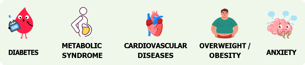 These risks could be explained by the fact that eating late in the evening may increase feelings of hunger by modulating appetite hormones (↑ ghrelin/leptin ratio), while slowing metabolism and promoting fat storage (↓ lipolysis and ↑ adipogenesis).