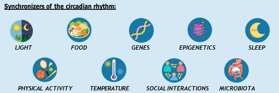 “Zeitgebers” are environmental and social signals that inform the circadian system and continuously synchronize biological rhythms over 24 hours. Daylight is the main zeitgeber, and food intake is also a powerful synchronizer.