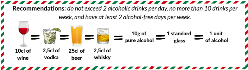 Holiday meals are often accompanied by alcohol consumption. To make the most of it, it is important to drink alcohol in moderation. Excessive alcohol consumption has negative health consequences.