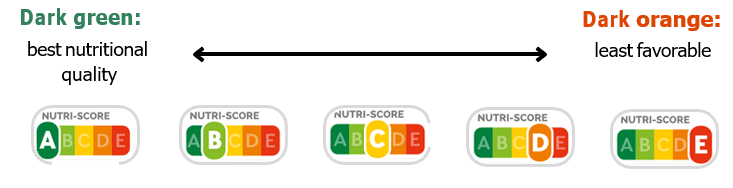 The Nutri-Score is based on a five-color scale associated with letters ranging from: