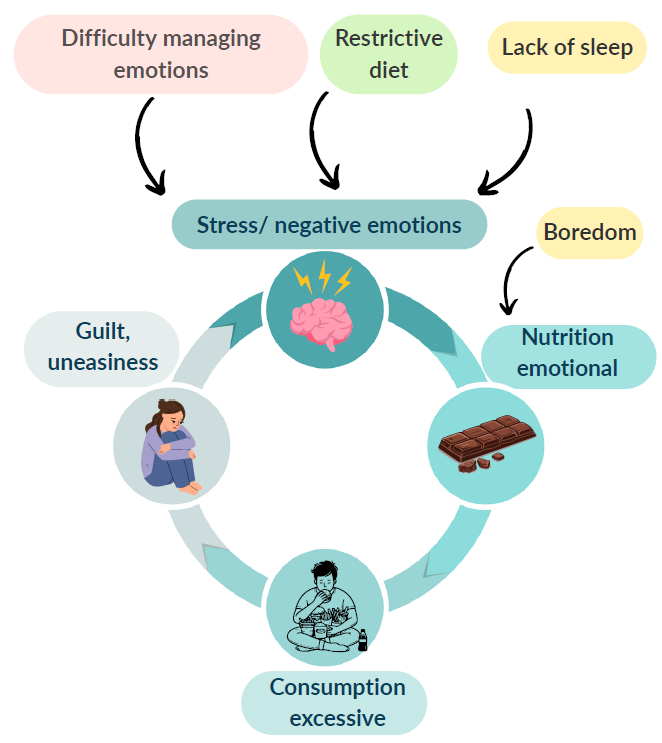 makes me fat”). This excessive control encourages guilt, stress and the need for comfort, which increases the risk of emotional eating.