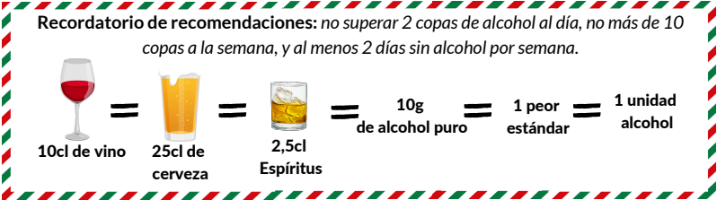 Las comidas festivas suelen ir acompañadas de consumo de alcohol. Para disfrutar al máximo, es importante consumir alcohol con moderación. El consumo excesivo de alcohol provoca consecuencias negativas para la salud.