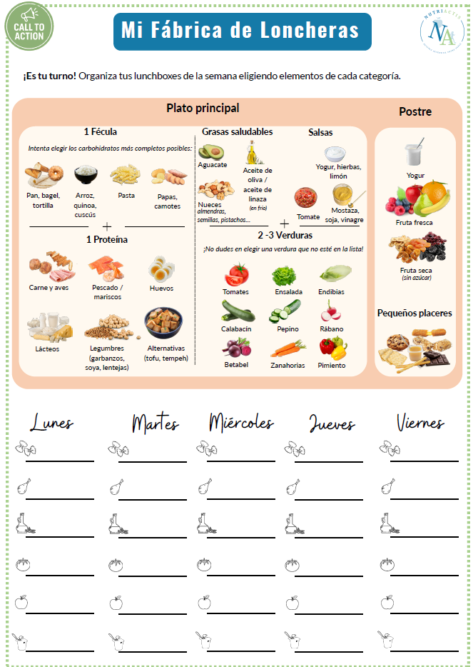 Con la ayuda de nuestra sección de ‘call to action’, aprovecha al máximo nuestra fábrica de loncheras para diseñar rápidamente loncheras equilibradas.