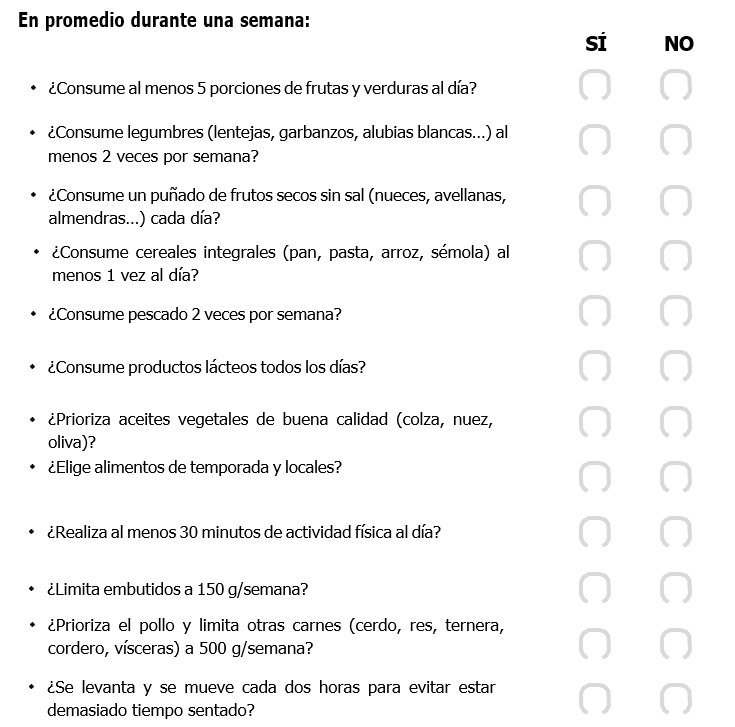 ⚠️ Este cuestionario no reemplaza la opinión de un profesional de la salud. Está diseñado únicamente para ofrecer referencias generales sobre su alimentación, y los resultados deben interpretarse con precaución. No está destinado a personas con patologías que requieran dietas específicas o seguimiento nutricional personalizado.