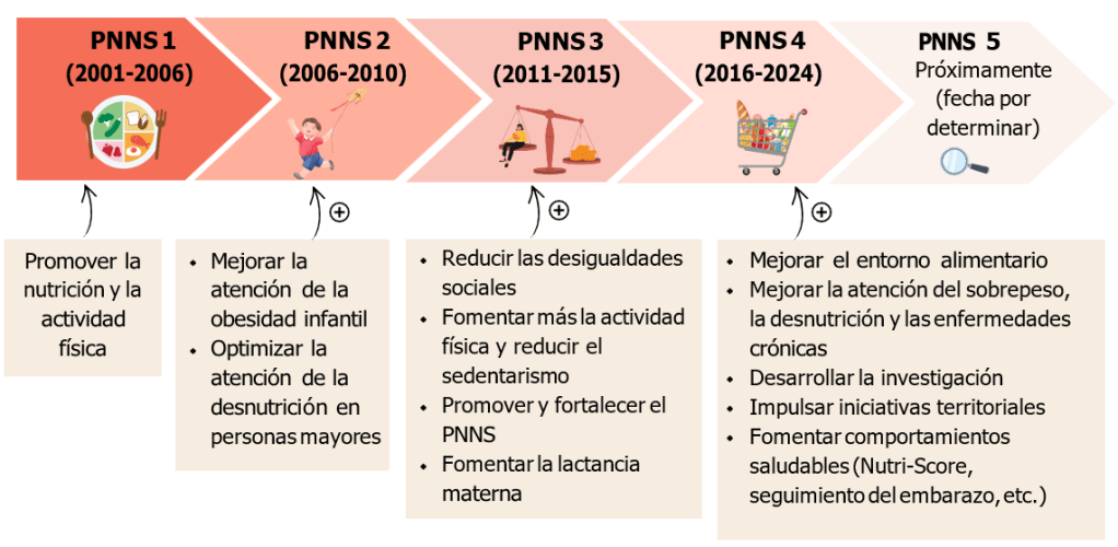 El PNNS ha evolucionado a lo largo de los años (PNNS 1 → PNNS 4) para adaptar sus objetivos a los avances científicos, así como a los nuevos desafíos de la sociedad.