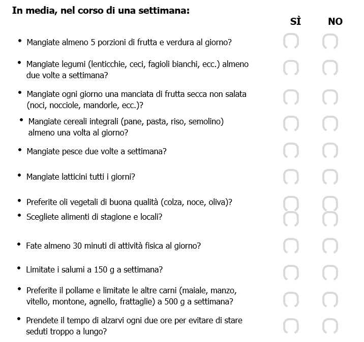 Questionario sul rispetto delle raccomandazioni del PNNS
