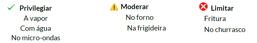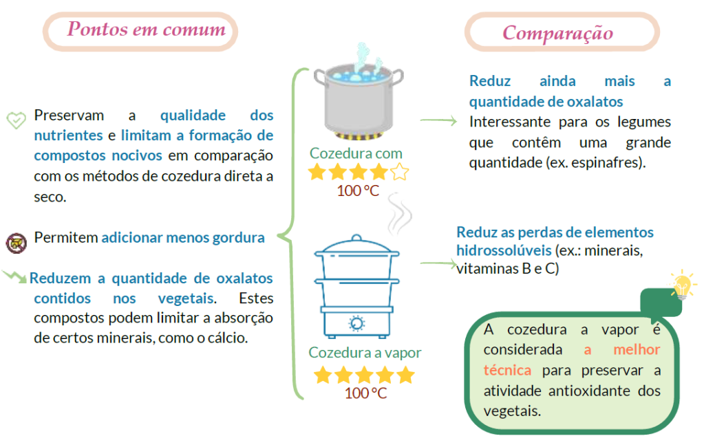 As estrelas são dadas a título indicativo para facilitar a comparação dos métodos de cozedura, com base na formação de compostos nocivos e/ou na perda de nutrientes, sem ter em conta o sabor, a conveniência ou o consumo de energia.