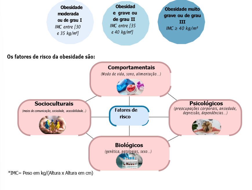 A obesidade é classificada em vários graus definidos em função do Índice de Massa Corporal (IMC)*: