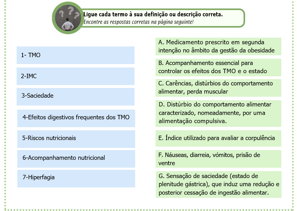 A obesidade é uma patologia complexa com eventuais consequências graves para a saúde. Geralmente, a sua gestão começa por mudanças no estilo de vida, como na alimentação e na atividade física. Contudo, em função da situação de cada paciente, os tratamentos medicamentosos, entre os quais os tratamentos medicamentosos para a obesidade (TMO), podem por vezes ser propostos como complemento